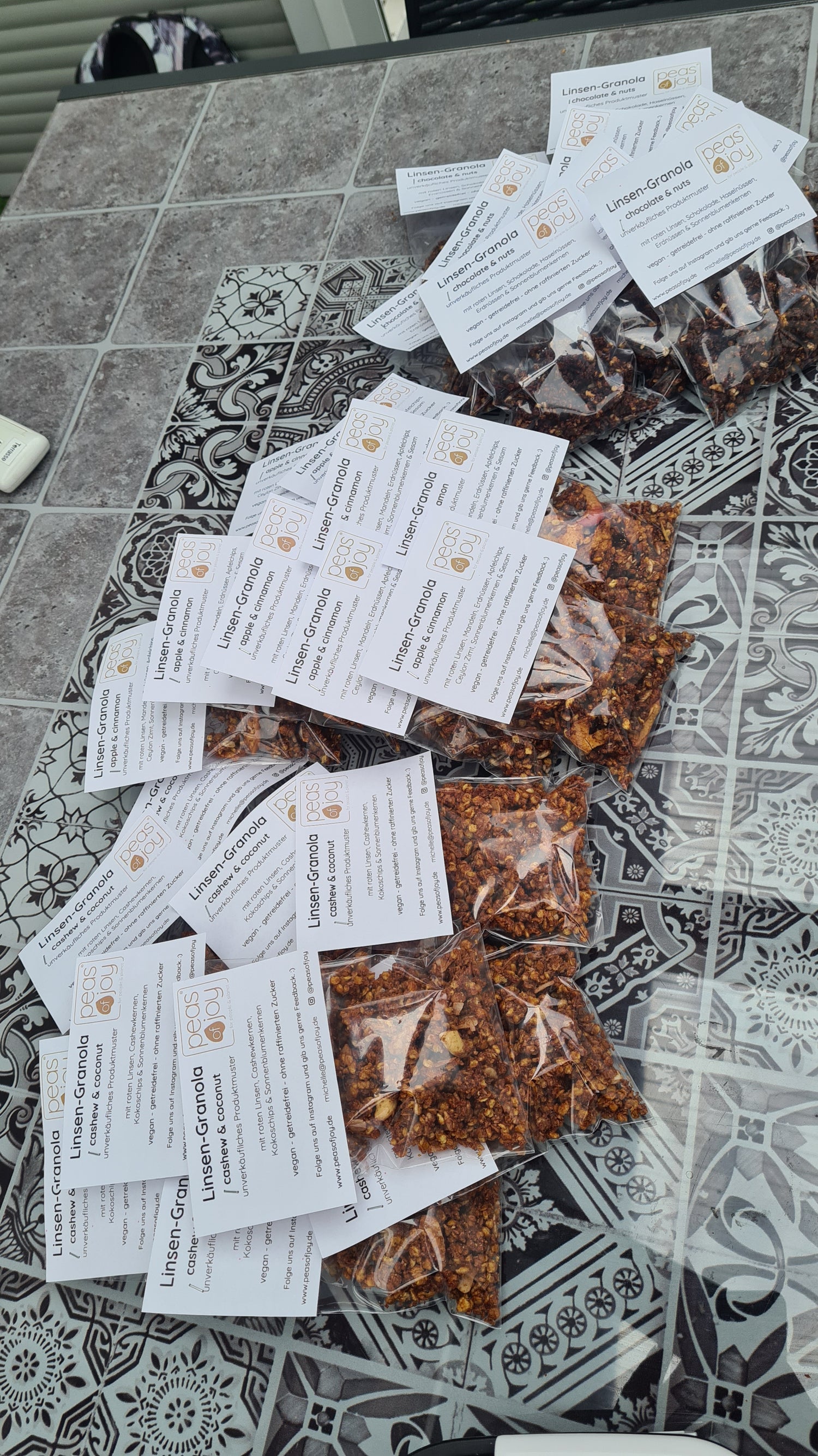 Schon seit Februar 2021 - also bereits ein Jahr vor der offiziellen Gründung von peas of joy - nehme ich euch über Instagram mit auf dem langen Weg zum Launch meines ersten Produkts, dem Bio Linsen-Granola. Dort sind all die Höhen und Tiefen der letzten Monate festgehalten (vor allem von den Tiefen gab es einige :D). Für mehr Einblicke in den Start-up-Alltag, schau gerne dort vorbei. :)